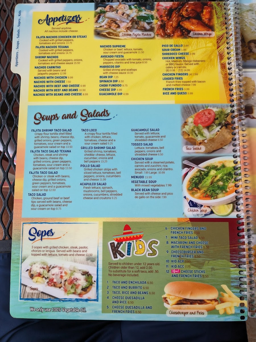 The lunch offerings feature delightful choices like Lunch Taquitos Mexicano, filled with both chicken and beef, served alongside guacamole salad. For a heartier option, try the Texas Fajitas, a flavorful medley of steak, chicken, and shrimp perfectly grilled with sautéed vegetables. Don't miss the indulgent Chorizo Burger for a unique twist.